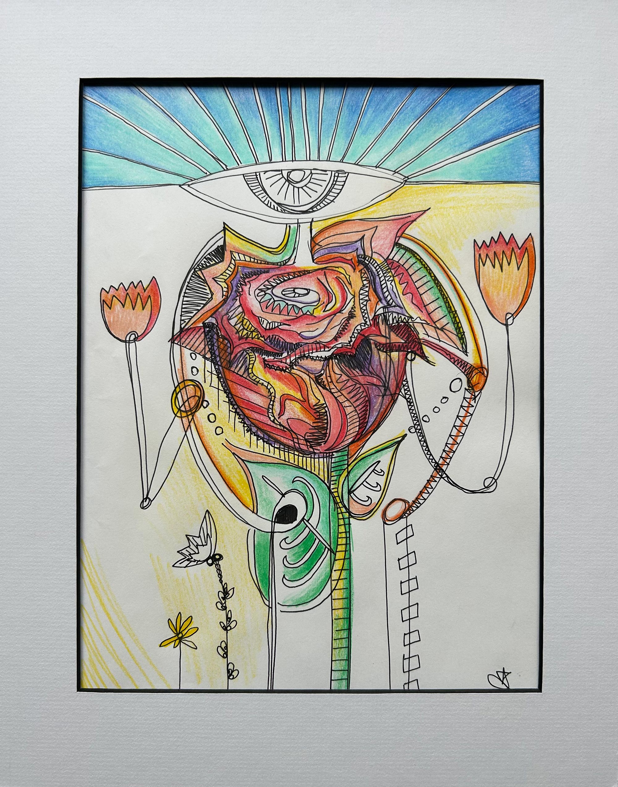 Original hand drawing 8.5 x 11 inches. Made with Colored pencils. From longstanding series referred to as the “Eye Creature”