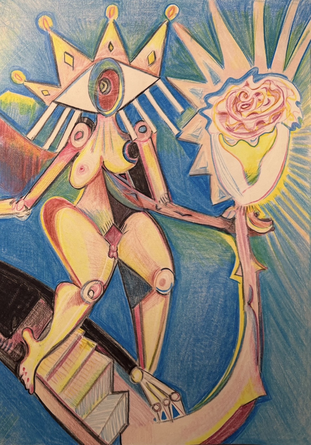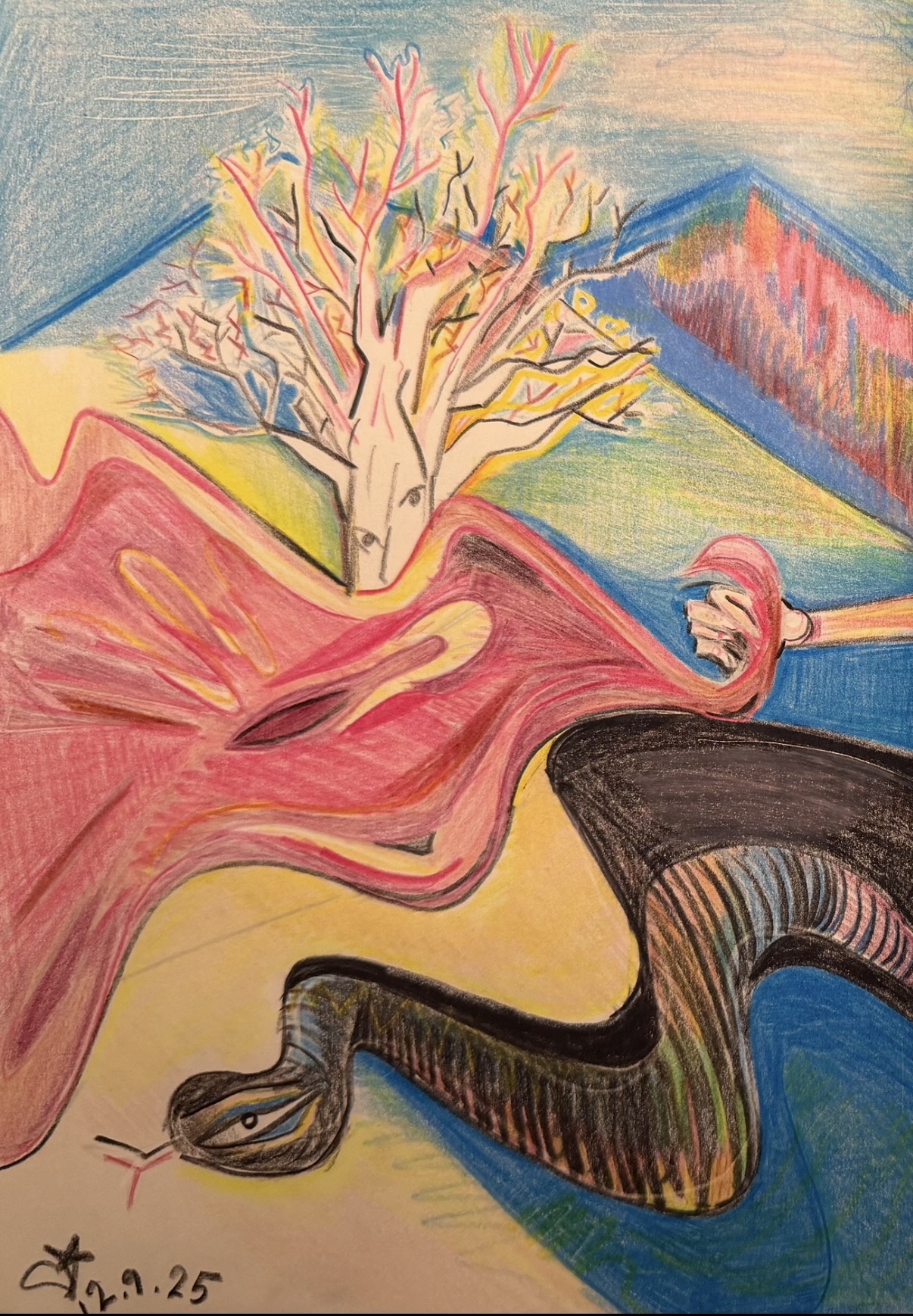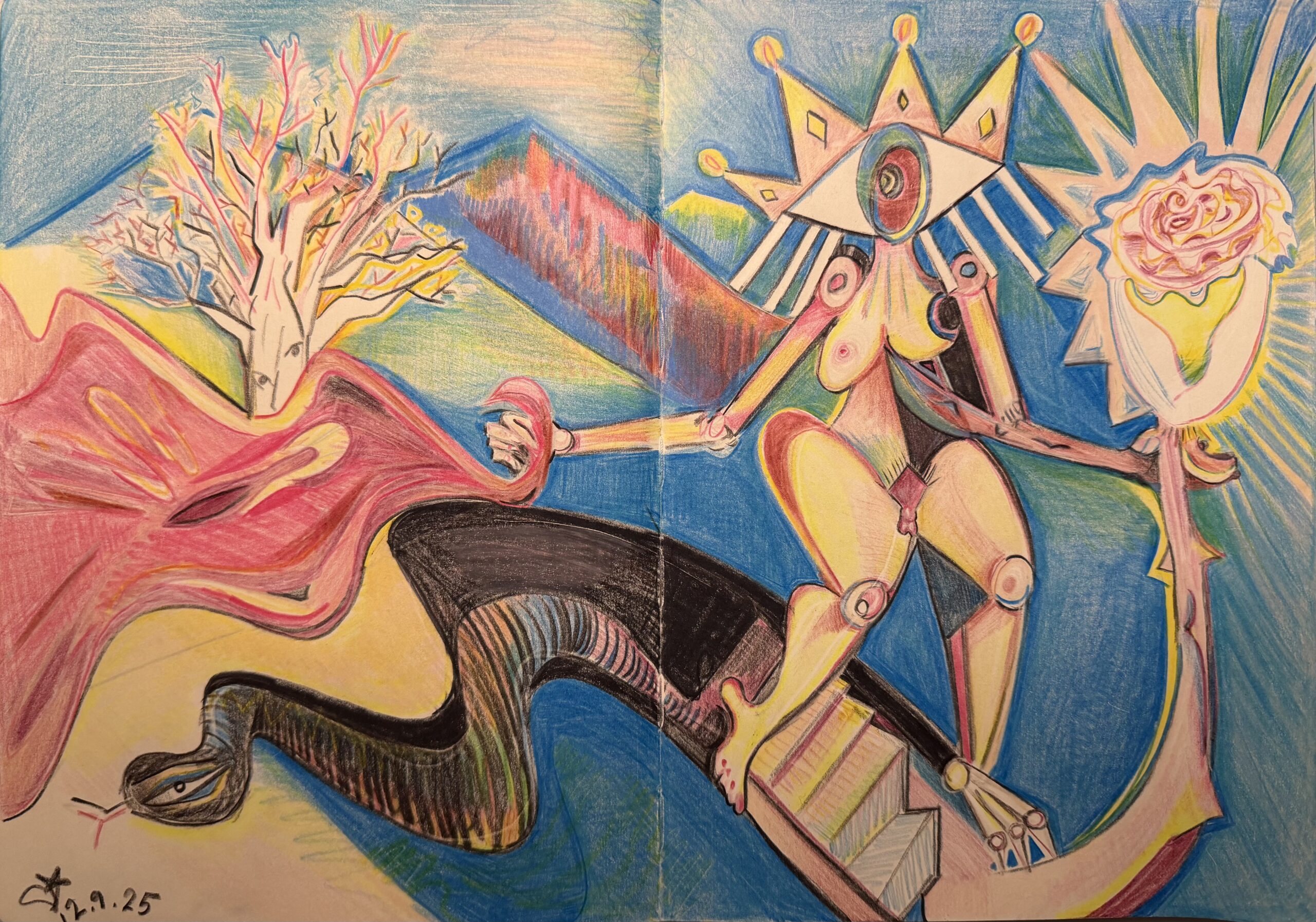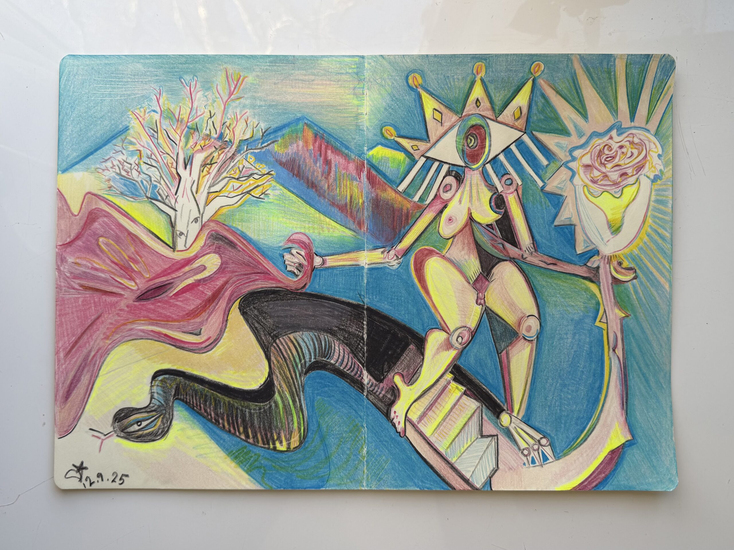 Made in December, 2025 – 16 x 22 inch colored pencil drawing on white paper.